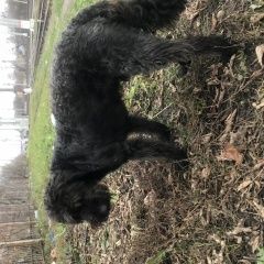 на ж/д путях напротив магазина 5 по ул. Железнодорожная появился пес среднего размера, темно-серого окраса кудрявый, стриженый, похож на терьера, с широким ошейником. Близко не подходит. Либо потерялся, либо выкинули. Голодный.