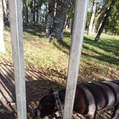 Нашлась собачка девочка Стаф. В Мурино в парке на собачьей площадке где стадион..
