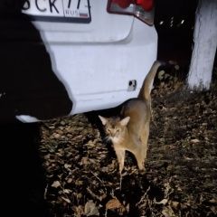 кошка или кот. Абиссинская порода. Найден около стадиона Старт и ДШИ N10. Ласковый, но не дает взять себя на руки. Видели 25. 10. 25 примерно в 22:30, забрался на дерево.